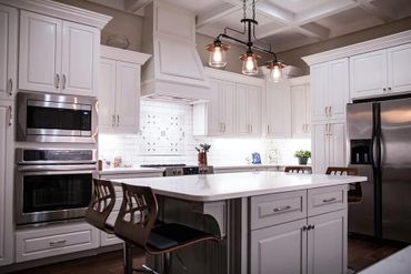 Kitchen Remodel designed by Jayne McGinn Designs of New Bern using LG Viatera Quartz in Soprano